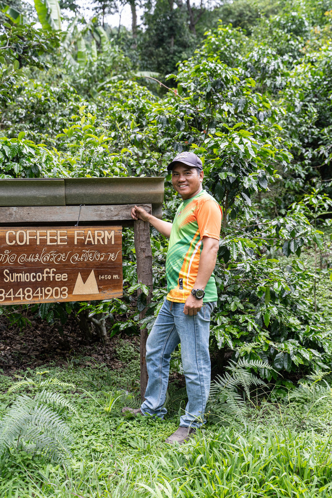 Sinthop is one of the leading voices for the Ahka coffee-producing community in Mae Chan Tai, growing coffee production in his region with goals of creating sustainable revenue for the people. For Sinthop, growing coffee is about elevating its quality and in return, increasing revenue and quality of life for his people. Mae Chan Tai valley is gaining more recognition for their arabica coffee, as well as their teas, stone fruit, and honey.